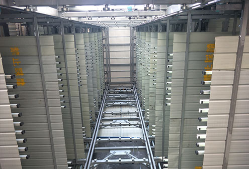 與電梯載人運行原理相似。車庫中間是汽車垂直運輸通道,在通道內設置垂直升降平臺,升降平臺兩側沿垂直方向設置停車泊位,汽車開至升降平臺后,升降平臺將汽車提升到預選的停車層,然后由升降平臺上的橫移機構將汽車送入停車泊位,存車完成。反之為取車過程。在出入口設置了汽車回轉盤,使汽車實現前進入庫,前進出庫。
